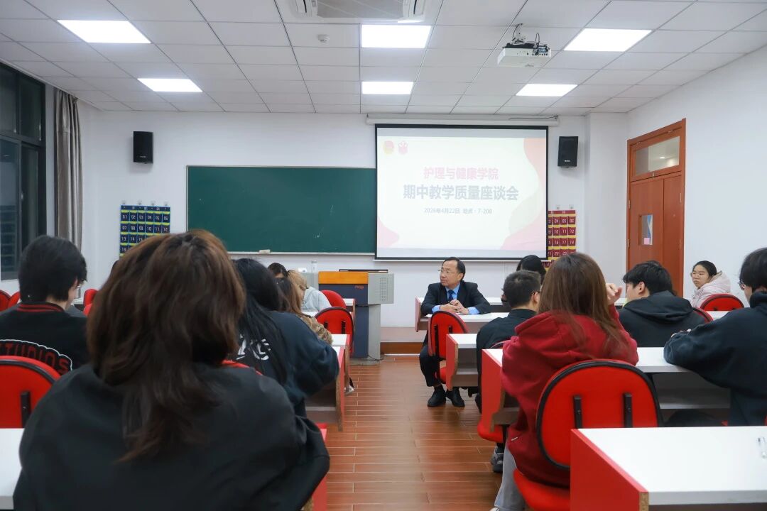 为进一步加强我院教师教学质量,快速响应教学中的问题,2026年4月22日,护理与健康学院于7号楼208教室分批次开展了2025-2026学年第二学期期中教学质量学生座谈会。本次会议由我院教学督导姜昌镐老师主持。